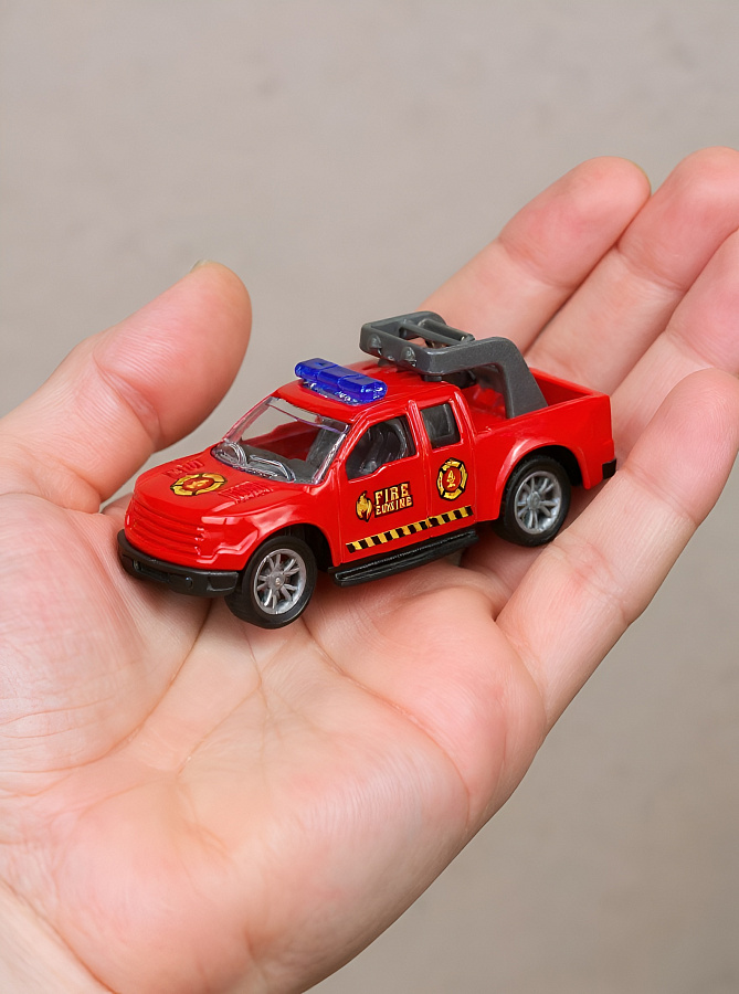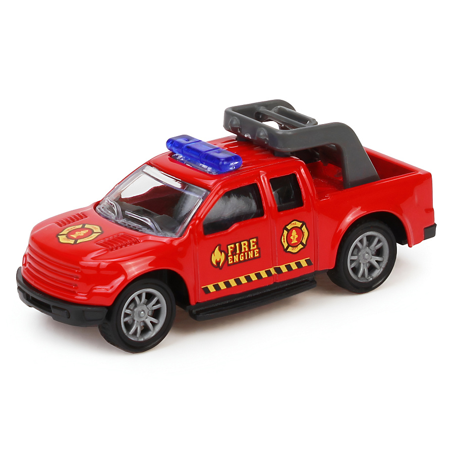 Маленькая металлическая машинка – пожарная спецтехника – в индивидуальной коробке. Инерционный механизм, прочный и качественный металлический корпус, высокая детализация. Пожарная спецтехника в ассортименте.