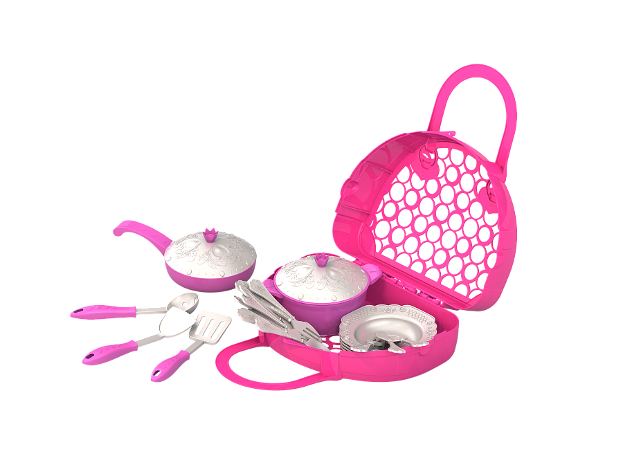 Набор состоит из 23 предметов и способствуют развитию фантазии, мелкой моторики рук, познанию начальных азов этикета, сервировки стола и приема гостей и просто веселому времяпрепровождению.